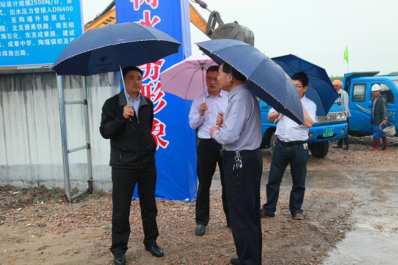 5月6日,縣委副書(shū)記、縣長(zhǎng)徐國(guó)龍,副縣長(zhǎng)謝興長(zhǎng)等縣領(lǐng)導(dǎo)調(diào)研陶堰、孫端、富盛三鎮(zhèn)生活污水收集系統(tǒng)建設(shè)情況。集團(tuán)公司領(lǐng)導(dǎo)倪阿泉、單寶子等陪同調(diào)研。